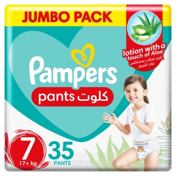 بالتأكيد نتفق جميعًا على أن بشرة الأطفال الناعمة كالحرير من أهم مميزاتهم مع إضافة غسول الألوفيرا المرطب، توفر حفاضات بامبرز بانتس بيبي دراي حماية لأطفالك من الطفح الجلدي وتمنع التسرب بنسبة تصل إلى 100% لأكثر من 12 ساعة للحفاظ على صحة بشرة الطفل وجفافها ونعومتها. ما هو وزن الطفل المناسب لحفاضات الحجم +6؟ الأطفال الذين يزيد وزنهم عن 17 كجم يمكنهم أن يرتدوا بسهولة وراحة حفاضات بامبرز بيبي دراي بحجم 7.