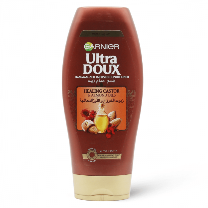 جارنييه الترا دو بلسم زيوت الخروع و اللّوز المعالجة، لترميم الشعر الضعيف و القابل للتساقط و المستوحاة من العادات الشرقية لحمام الزيت.