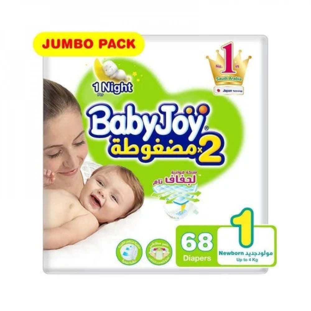 Baby Joy Newborn Diapers Size 1 0-4 kg Mega Pack 68 Diapers