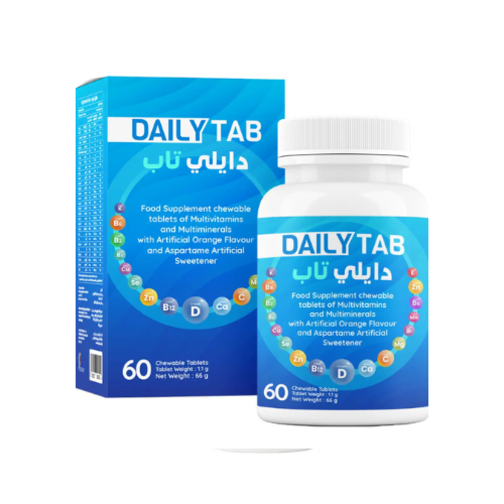 Daily Tab 60 Chewable Tablets is an ideal blend of vitamins, essential minerals and antioxidants that support your daily recommended vitamin and mineral needs.