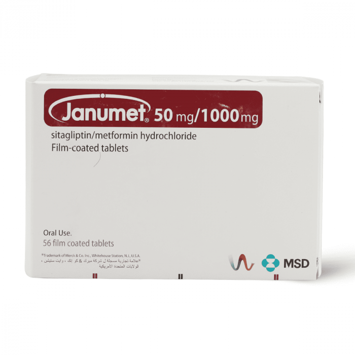 Janumet 1000/50, reduces blood sugar levels and protects against diabetic complications - 56 tablets